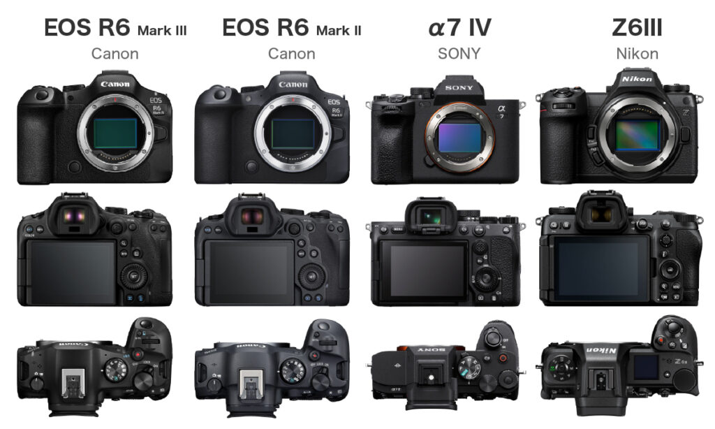 | 製品名 | EOS R6 Mark III | EOS R6 Mark II | α7 IV | Z6III |